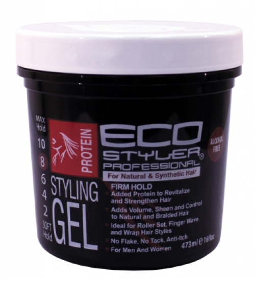 Eco Styler Protein Gel provides conditioning and strength for hair nourishment. Eco Style Protein Gel is string holding, water based and will provide moisture to help maintain healthy hair.