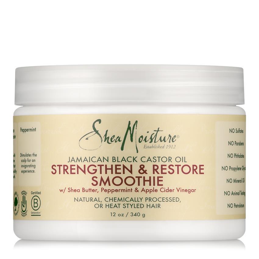 Moisturize and define big, bouncy natural curls, or smooth chemically processed and heat styled hair with this rich, emollient styling smoothie. Nutritive Jamaican Black Castor Oil and certified organic Shea Butter blend in a strengthening formula that restores healthy moisture to damaged, brittle hair while defining curls and reducing frizz. Peppermint Oil invigorates the scalp for a stimulating experience.