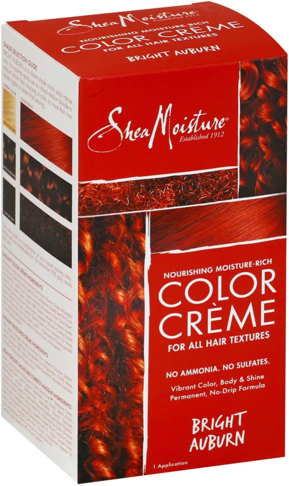 SheaMoisture Color Creme is our next step in offering more healthy hair options. We fused our knowledge of natural and certified organic healing ingredients with safe science, insights from top salon professionals and years of listening to women who want to enhance the health and beauty of their hair. Using our signature certified organic Shea Butter, blended with other good-for-you naturals, including Acai and Glycerin, Flax Seed and Abyssinian Oils, and Soy Protein, we’ve created an efficacious system with a vibrant color palette. Our color care delivers healthy nutrients that help minimize damage while delivering superior hydration, exceptional mangeability and shine.