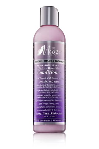 Pink Lemonade & Coconut Super Antioxidant & Texture Beautifier Conditioner is a texture enhancing delight. Formulated to define and shape your curls. It adds the perfect blended balance of clarification, hydration and moisture to give your hair the ability to showcase its most optimal texture. This collection is a must have to the ultimate curly, wavy, and kinky hair regimen. Infused with biotin, vitamins and nutrients to aid in hair growth and retention. enhanced with antioxidants to minimize potentially damaging oxidizing agents the perfect balance of clarification, moisture and hydration renders a beautiful texture while conditioning and enhancing curls lightweight and anti-frizz formulated adds longer lasting shine strengthens, conditions, protects improves elasticity & definition Directions: After shampooing with Pink Lemonade & Coconut Super Antioxidant & Texture Beautifier Shampoo, work thoroughly into wet hair. Massage gently into your hair, especially the ends. Leave in hair for 3 to 5 minutes and rinse well. INGREDIENTS : Communis (Castor) Seed Oil, Tocopheryl Acetate (Vitamin E), Biotin, Panthenol, Citrus Limon (Lemon) Peel Oil, Aloe Barbadensis (Aloe Vera) Leaf Juice, Citrus Grandis (Grapefruit) Extract, Betula Alba (Birch) Bark Extract, Chamomilla Recutita (Matricaria) Flower Extract, Ascorbic Acid (Vitamin C), Althaea Officinalis (Marshmallow) Root, Thymus Serpillum Extract, Urtica Dioica (Nettle) Extract, Malva Sylvestris (Mallow) Flower Extract, Hypericum Perforatum (St. John’s Wort) Extract, Tussilago Farfara (Coltsfoot) Extract, Thymus Vulgaris (Thyme) Extract, Salvia Officinalis (Sage) Leaf Extract, Clary Sage (Salvia Sclarea) Extract, Achillea Millefolium (Yarrow) Extract, Equisetum Arvense Extract, Lavandula Angustifolia (Lavender) Extract, Rosmarinus Officinalis (Rosemary) Leaf Extract, Guar Hydroxypropyltrimonium Chloride (Plant Derived), Citric Acid, Red 33, Fragrance (Essential Oil Blend)